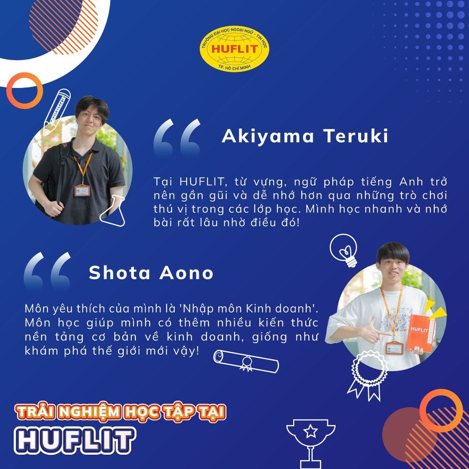 Năm nay, các sinh viên Teikyo gồm Shibuya Hinata, Akiyama Teruki, Aono Shota, Hamano Kosaku, Shimojima Kanamu, Kataoka Hayato, và Hosokawa Jiei đã có cơ hội học tiếng Anh chuyên ngành và tham gia nhiều hoạt động giao lưu văn hóa tại HUFLIT. Các bạn không chỉ học hỏi từ các lớp học mà còn tham gia các hoạt động ngoại khóa như sinh hoạt học thuật, khám phá văn hóa Việt Nam cũng như tham quan các địa điểm nổi tiếng trong và ngoài TP. HCM.