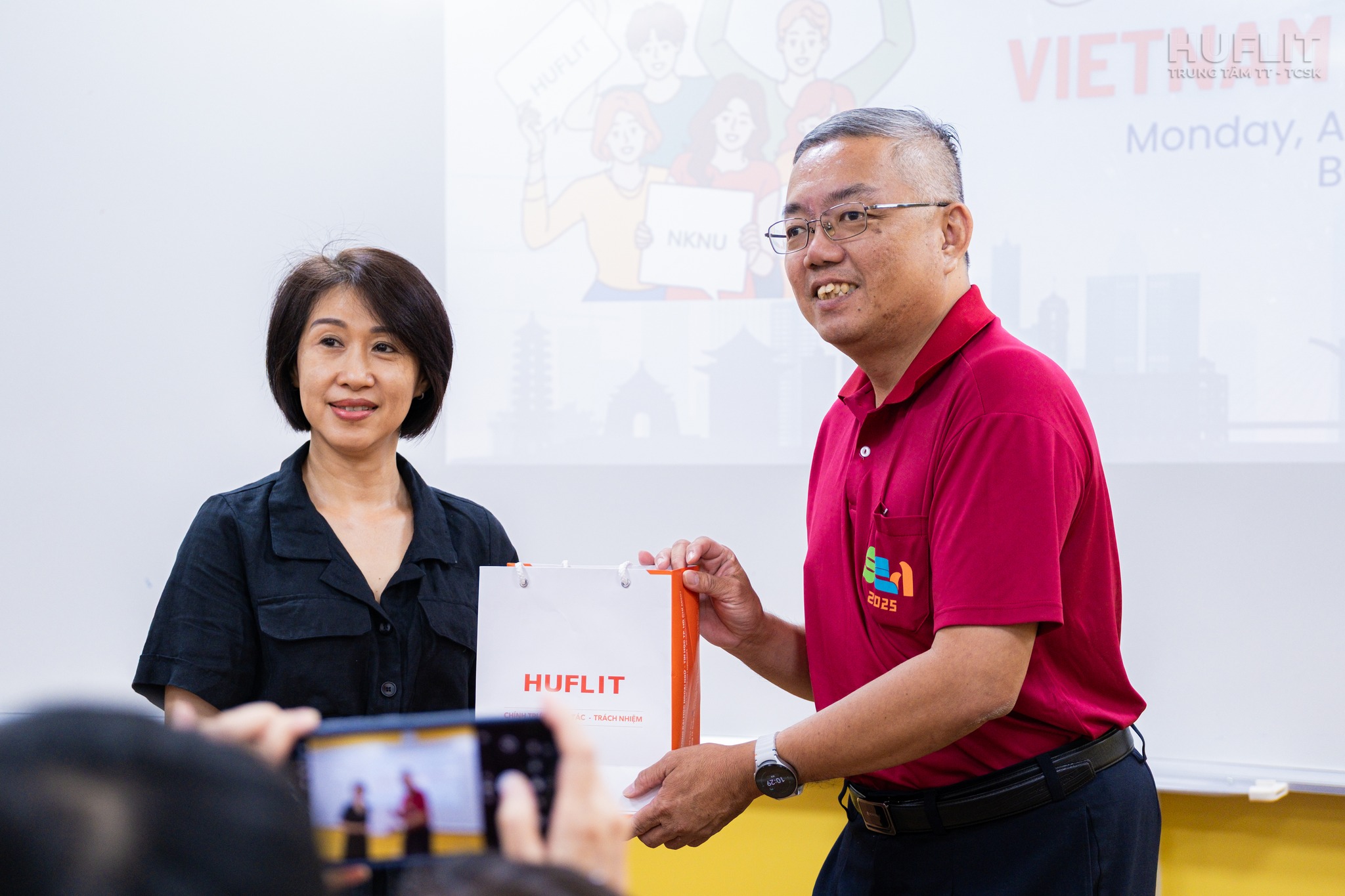 During the engagement, HUFLIT students were afforded the opportunity to gain comprehensive insight into the study environment and the distinct research orientations underpinning postgraduate education in Taiwan. NKNU representatives delivered detailed presentations on scholarship opportunities, master’s degree admission criteria, and the extensive support services available for international students.