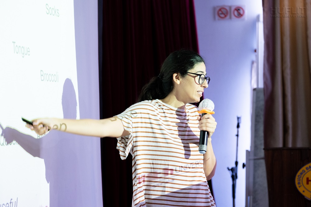 Tiếp theo chương trình, TS. Carla Riverola đã chia sẻ với các bạn sinh viên khoa Du lịch – Khách sạn những hiểu biết cơ bản về khởi nghiệp, qua đó giúp các bạn có cái nhìn tổng quát về khởi nghiệp. Bên cạnh đó, TS. Carla Riverola cũng chỉ ra sự thiếu công bằng trong môi trường khởi nghiệp, cũng như sự thiếu vắng các nhà khởi nghiệp nữ giới, mất cân bằng về đa dạng chủng tộc. Do đó, TS. Carla Riverola bày tỏ mong muốn sinh viên HUFLIT sẽ là những người nhà khởi nghiệp thành công trong tương lai để chứng minh rằng sự thành công trong khởi nghiệp không hề bị giới hạn ở tuổi tác, giới tính, hay chủng tộc.