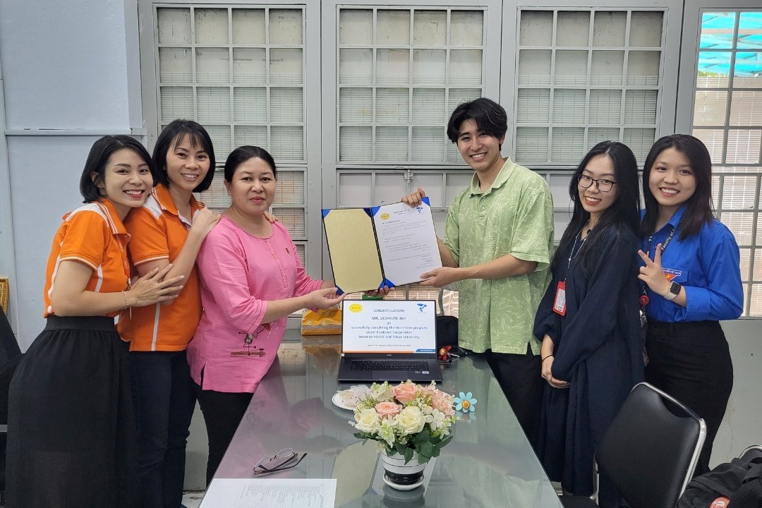 Chiều ngày 14/3, trước khi tạm biệt Ren Uchikune trở về Nhật Bản, HUFLIT đã tổ chức buổi lễ thân mật để trao chứng chỉ hoàn thành chương trình học tập 02 tuần tại HUFLIT.