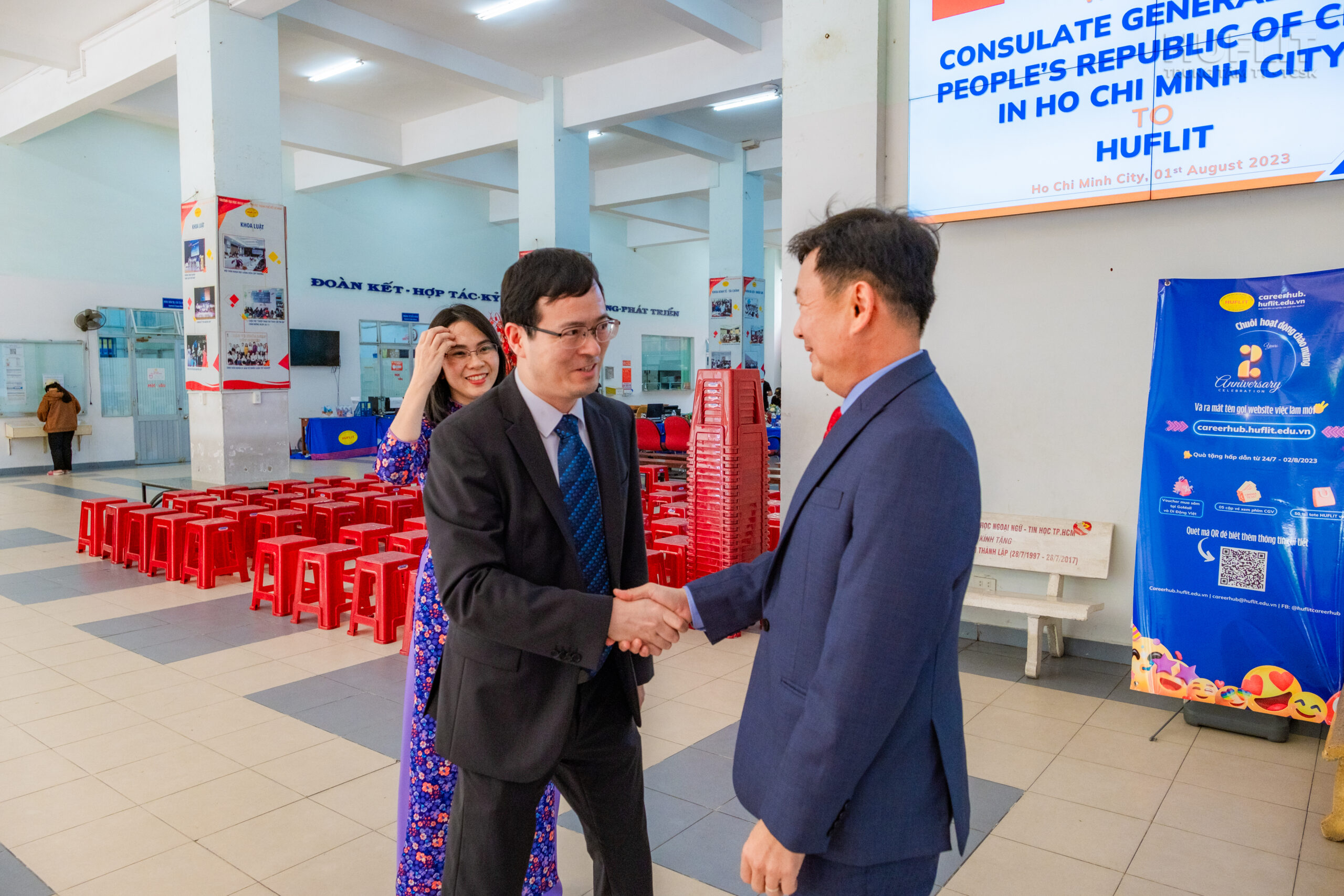 Để từng bước xúc tiến mối quan hệ này, TLSQ Trung Quốc tại TP.HCM đã đề nghị tài trợ phòng học đa chức năng cho HUFLIT (trị giá 500 triệu đồng) và tài trợ học bổng Tổng Lãnh sự cho những sinh viên giỏi, có đạo đức tốt và hoàn cảnh khó khăn.