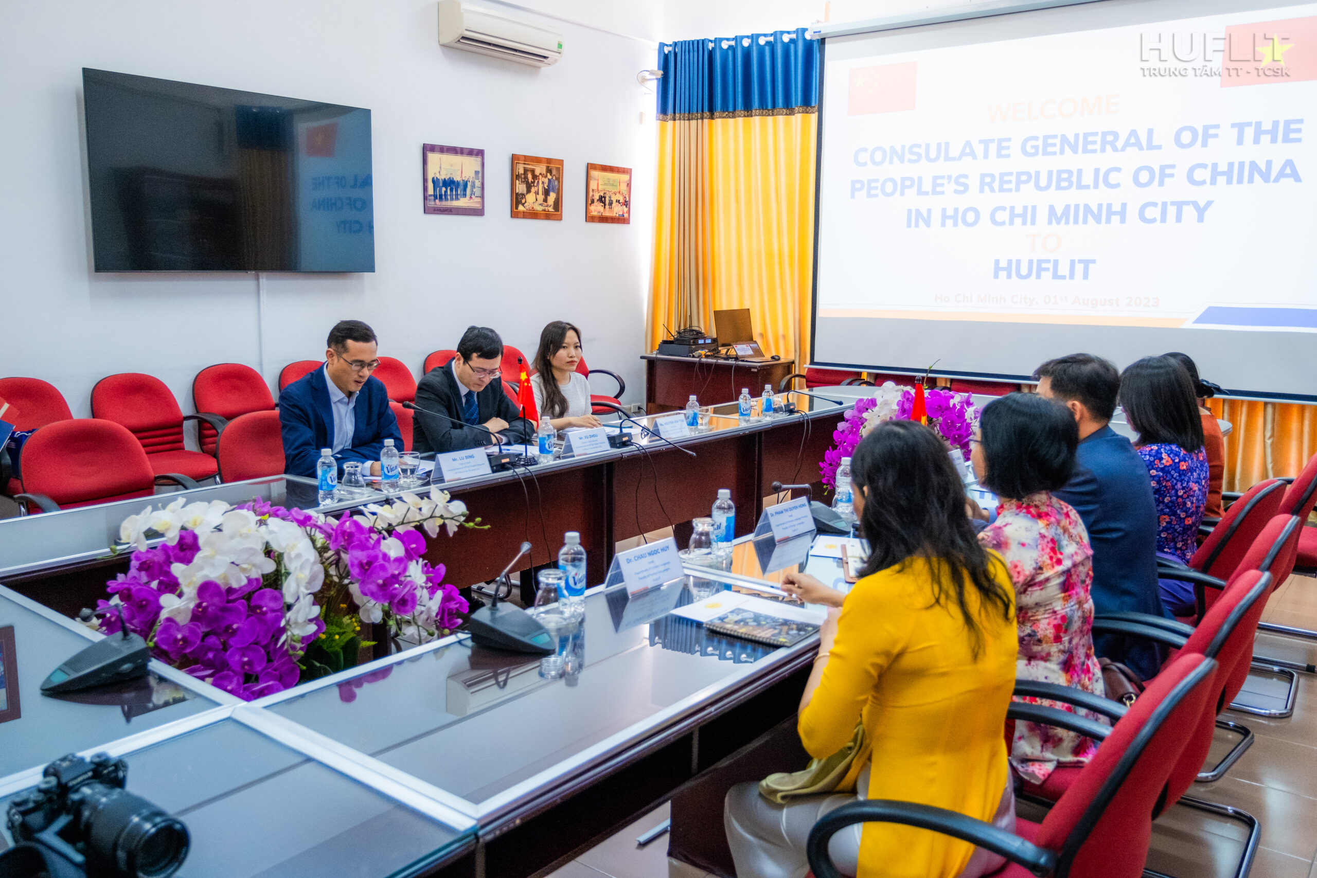 Chiều ngày 01/8/2023, HUFLIT đã có buổi làm việc cùng đoàn Tổng Lãnh sự quán Trung Quốc tại TP.HCM, dẫn đầu là Phó Tổng lãnh sự – Ngài Xu Zhou.